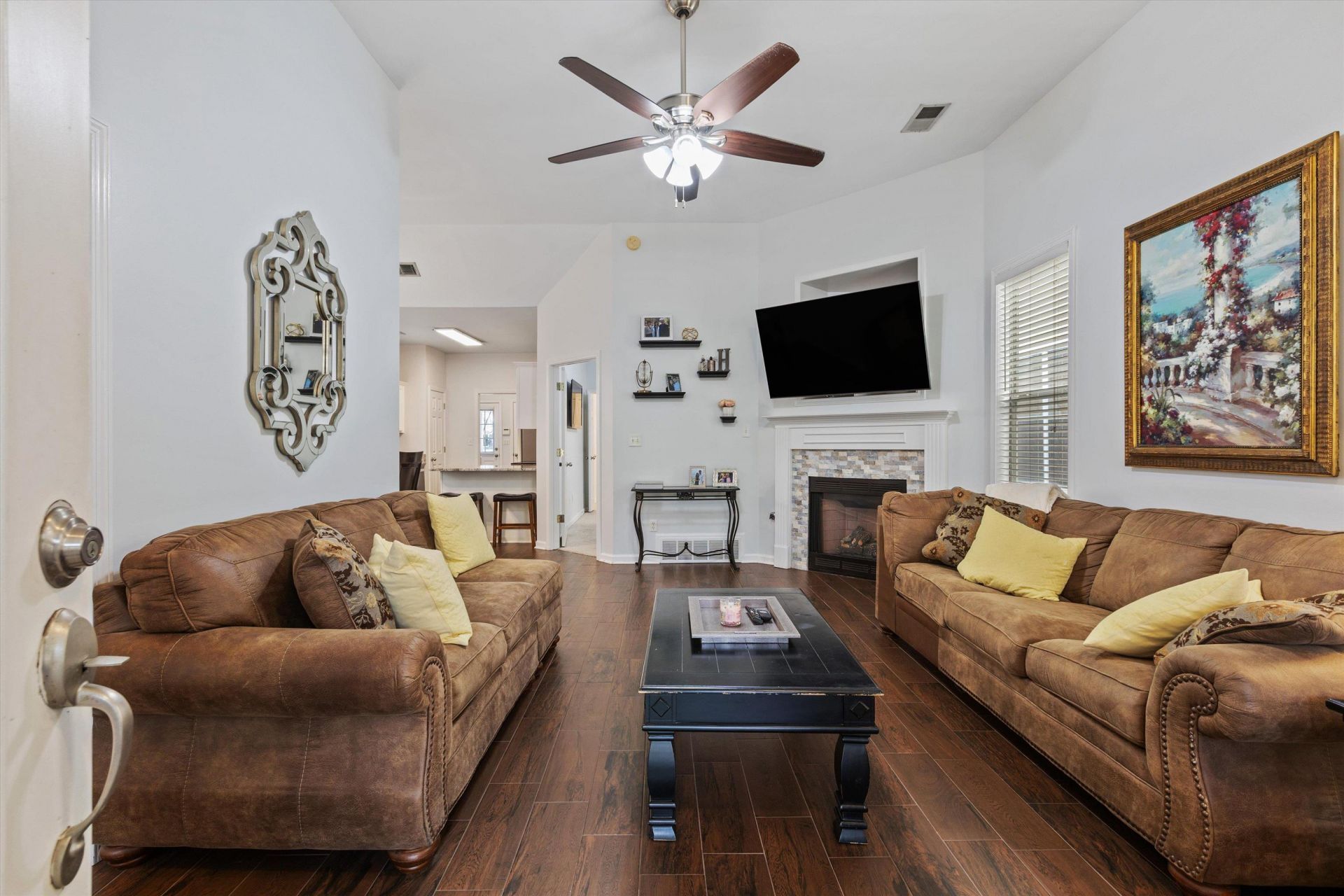 This 2 Bedrooom 2 Bath House is in Turnkey Condition. Granite Countertops. Glass Backsplash. Tile and Wood Floors. Under Counter Sink. New Appliances. Stone Fireplace Surround. Leaf Guards on Gutters. HVAC 2025. Updated Lighting.