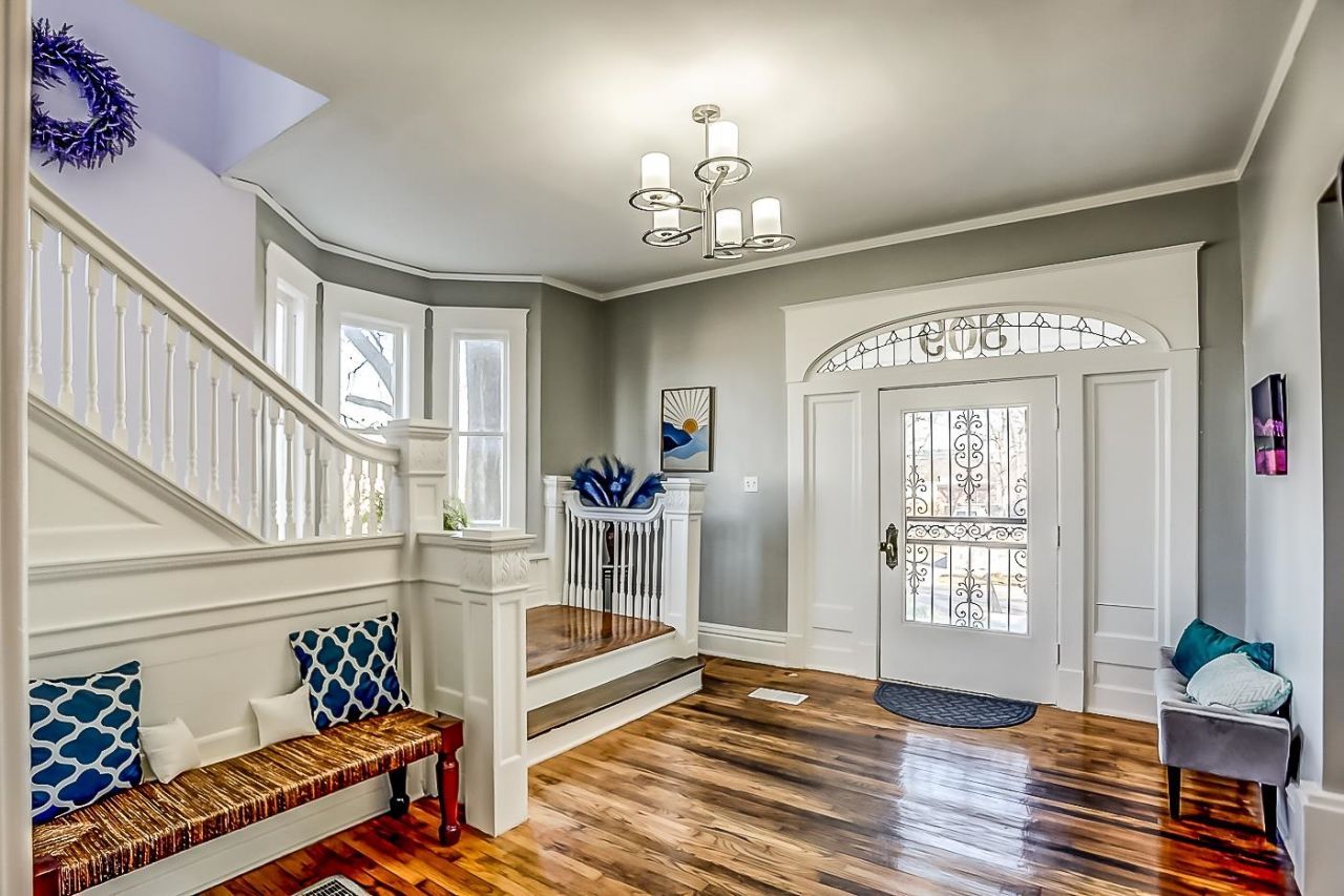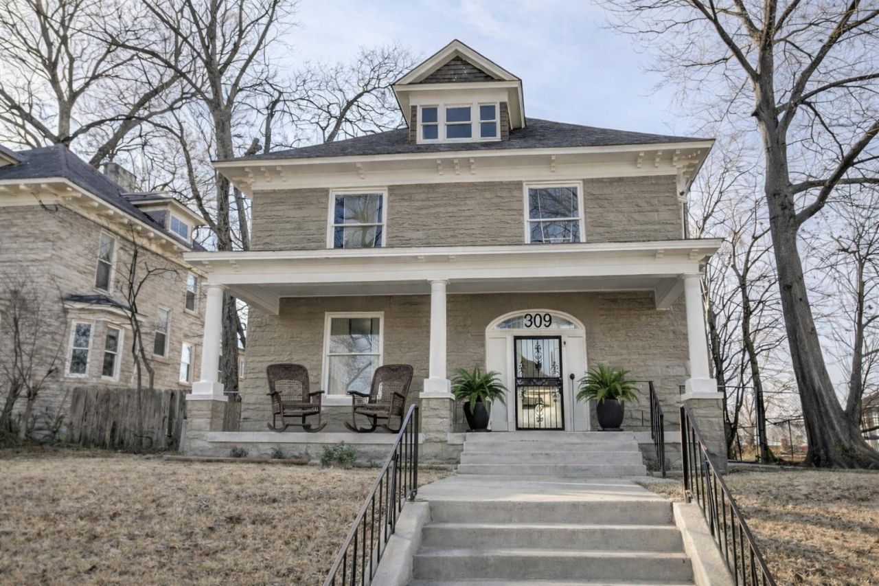 Timeless Southern Elegance! Historic American Foursquare rich in character, featuring a grand foyer with double staircase, soaring ceilings, and spacious, light-filled rooms that reflect classic Southern architecture. A sweeping front porch welcomes you into a home full of historic charm and period presence. Five bedrooms each offer private en-suite baths, while a dedicated office with separate entrance provides flexibility. Gated rear parking adds convenience. Large yard offers plenty of space for a pool and/or guest house. Nestled in the historic Peabody-Vance neighborhood between Downtown and the Medical District, within walking distance to UT Dental & Medical Schools. Select furnishings may transfer with purchase.