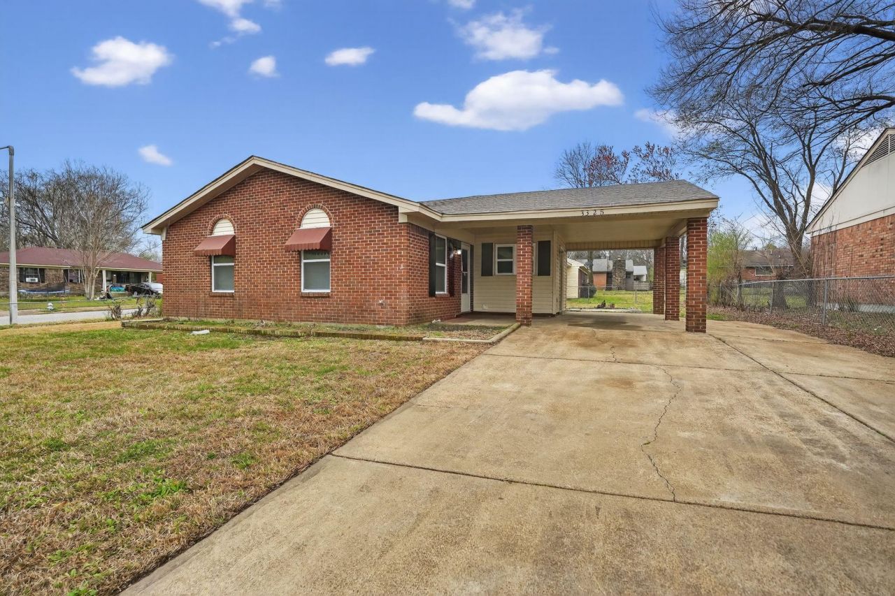 Welcome to 3325 Cedar Springs Dr in Memphis! This beautiful brick ranch-style single-family home offers wonderful curb appeal and an attached carport, all situated on a spacious lot with a fenced yard. The large backyard includes a concrete pad that's perfect for creating a grill or outdoor dining space, with plenty of additional room for a garden, a swing set, or both. A front flowerbed is ready for your favorite landscaping to add even more charm to the property. Inside, the home features neutral colors, abundant natural light, and gorgeous flooring throughout. The layout includes three bedrooms and one bathroom, along with a dining room conveniently connected to the kitchen. The kitchen features a tile floor, double sink, and space for a dishwasher, refrigerator, and range?so you can bring your favorite appliances and make it your own. Additional highlights include window coverings and a large interior laundry room for added convenience. Move-in ready and full of potential, this