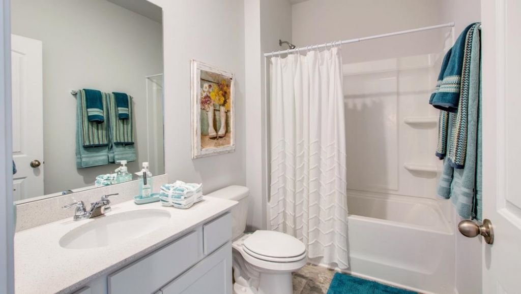 Come take a look at D.R.Horton's Model Home and see all we have to offer! The appealing one-story home includes many contemporary features, and an open-concept design, enhancing the wonderful feel of this home. The kitchen includes a large island perfect for bar-style eating or entertaining, a walk-in pantry, and plenty of cabinets and counter space. The dining room and living room both overlook the covered porch, which is a great area for relaxing and dining al fresco. The large Bedroom One, located at the back of the home for privacy, can comfortably fit a king size bed, and includes an en suite bathroom with double vanity, big walk-in closet, and separate linen closet. Three other bedrooms share a second bathroom. The two-car garage connects to the front hallway where the laundry room and an extra storage closet are also located. Pictures, photographs, colors, features, and sizes are for illustration purposes only and will vary from the homes as built.